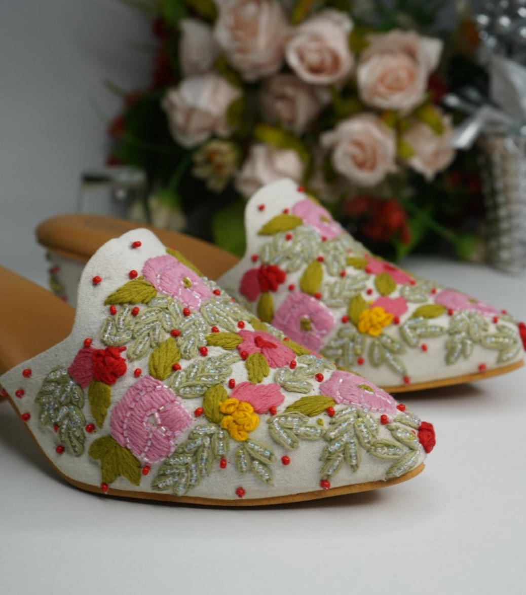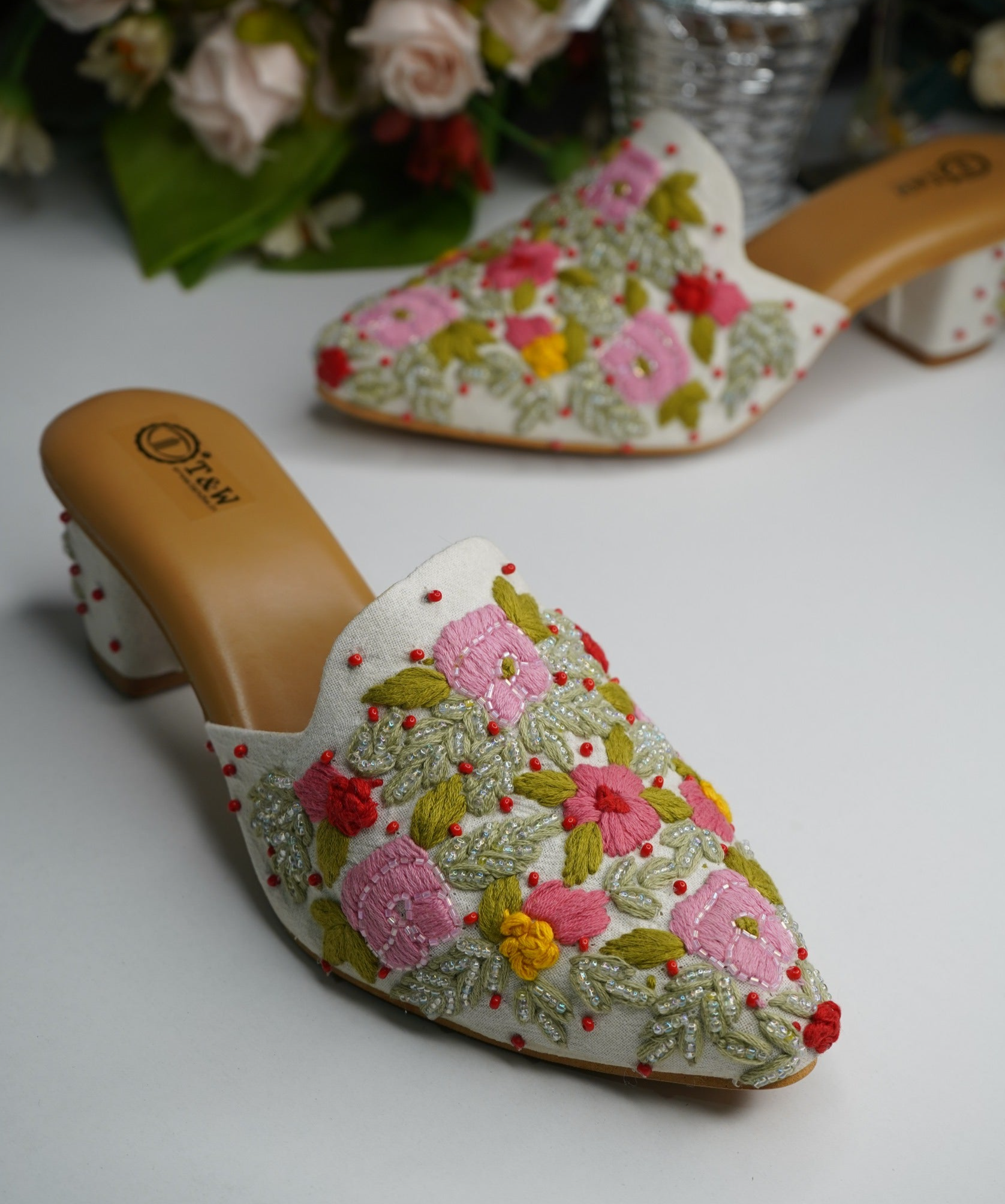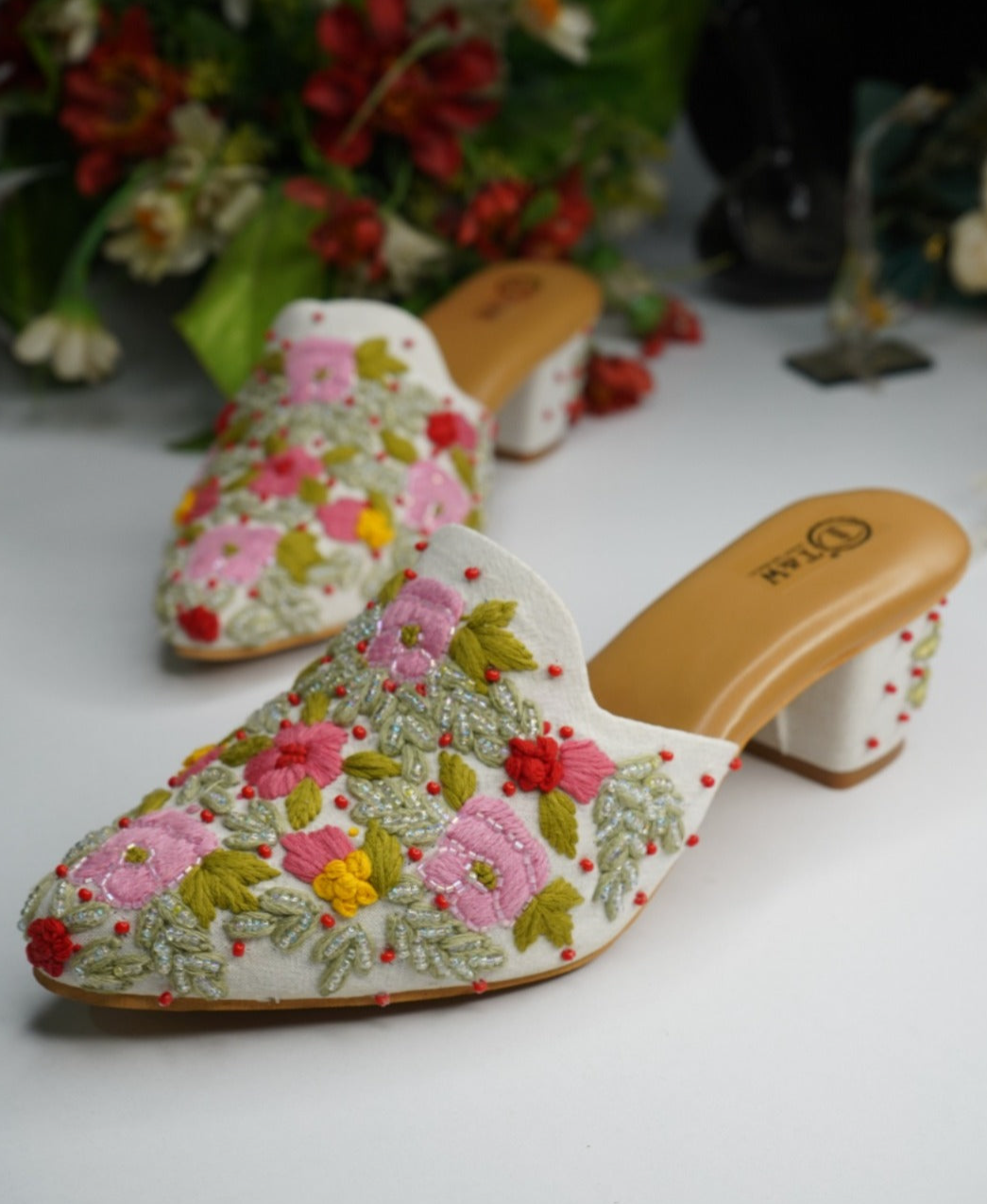 The Aamari Heel Mule combines style and comfort with its heavy heel and inner doctor sole. Its non-slip sole ensures safety, while the intricate embroidery work adds a touch of India to any outfit. Step into these Tandw mules and elevate your look.