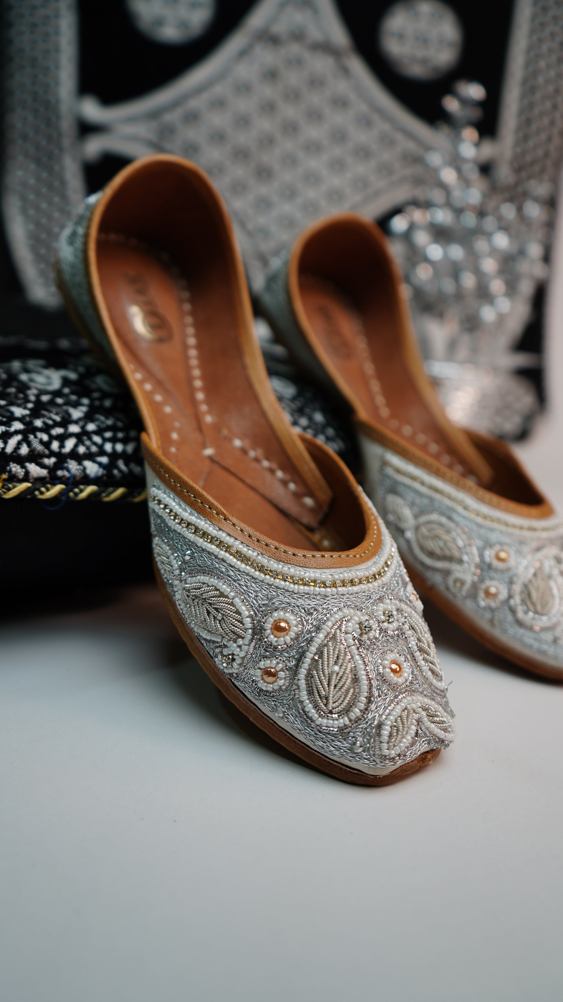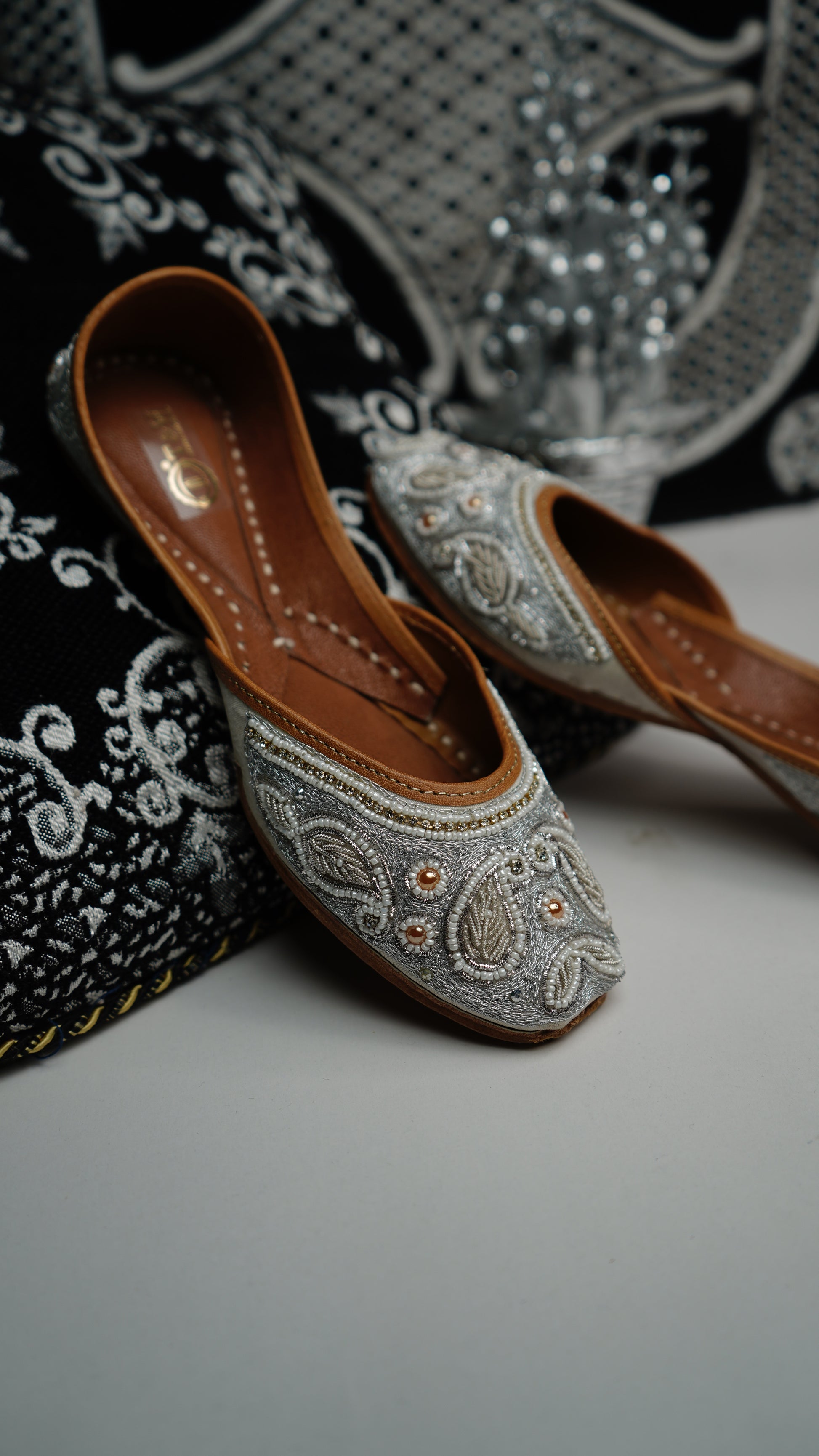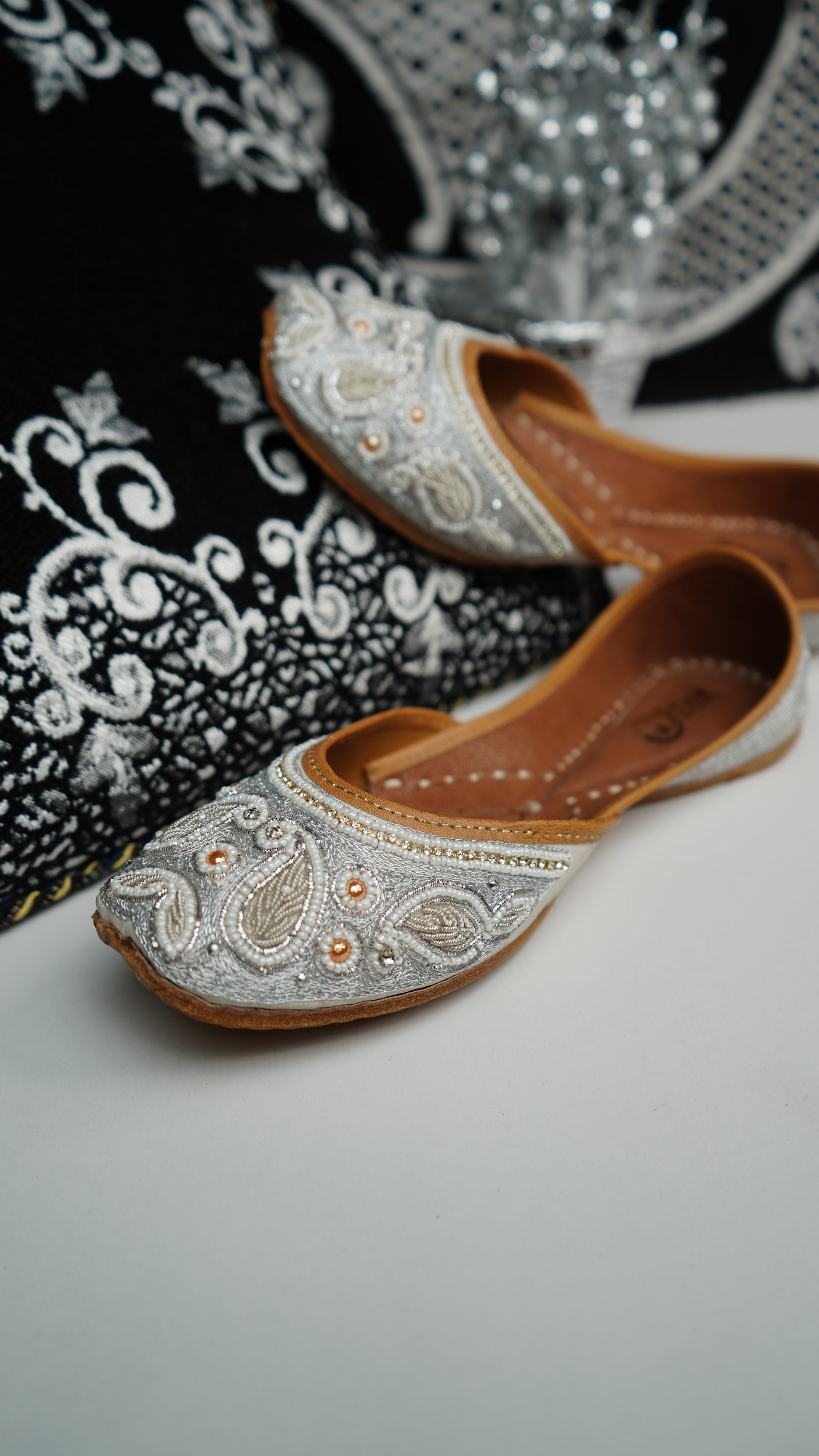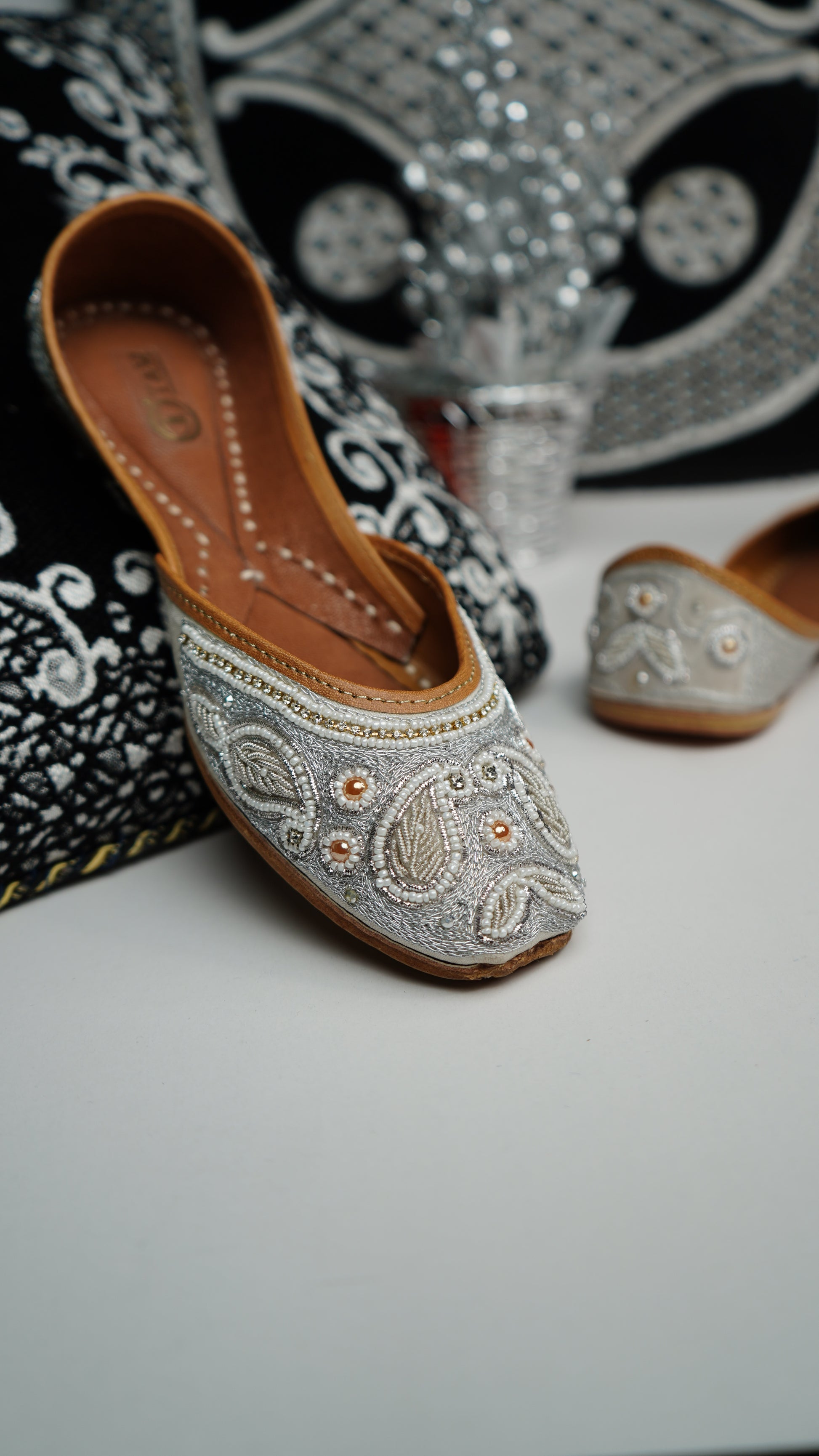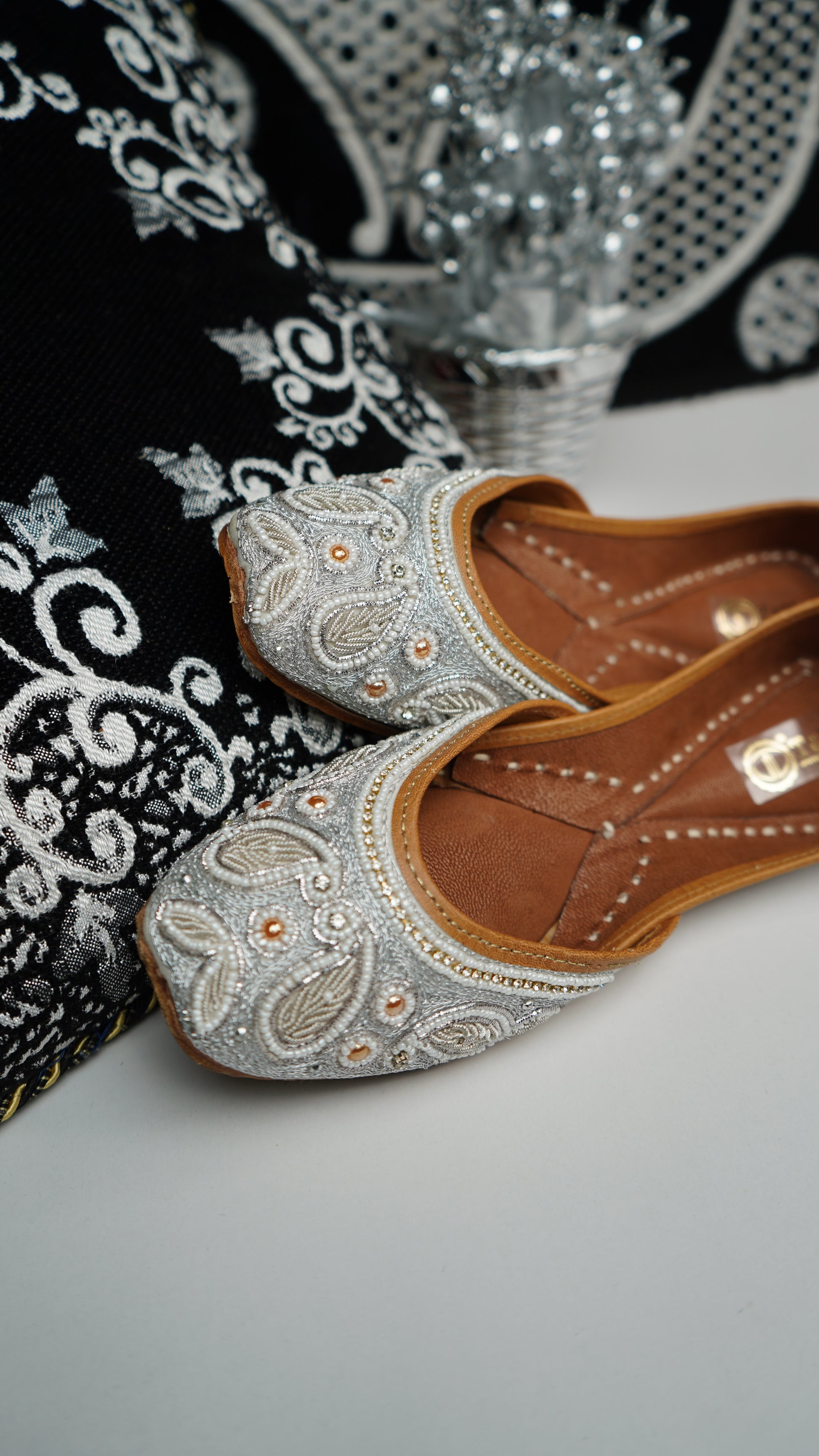 Expertly handcrafted in India, the Aarchana Jutti is the epitome of traditional luxury. The intricate Dabka work adds a touch of elegance to these comfortable shoes. Designed with an inner Pushan sole, these Juttis provide the perfect balance of style and comfort for any occasion.