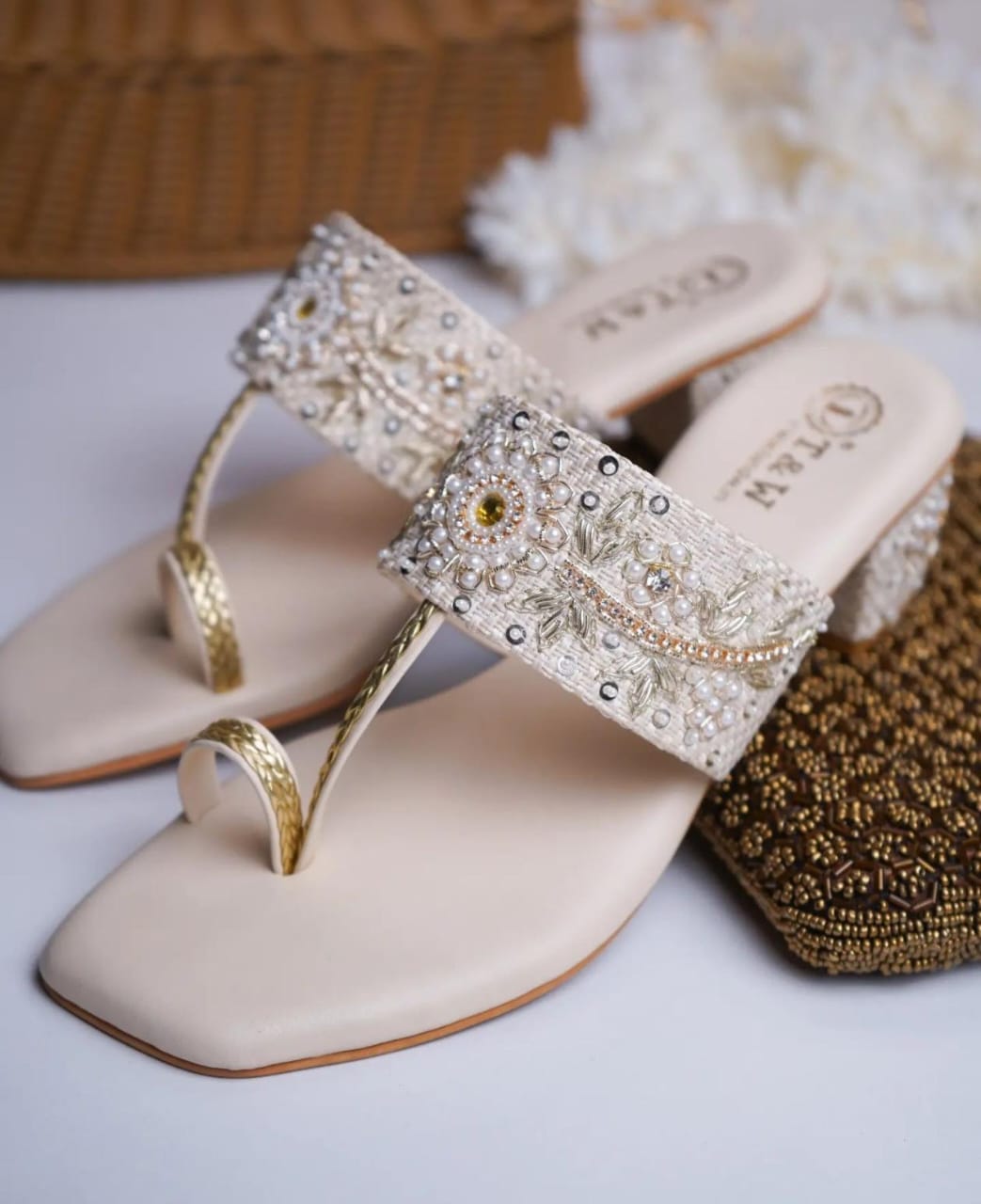 Introducing Abai (Heel), the perfect balance of elegance and comfort for your special day. Featuring a bridal heel with inner doctor sole for all-day wear, exquisite Zardozi work for a touch of luxury, and a non-slip sole for added stability. Handcrafted with traditional were techniques in India, these heels are the perfect choice for any occasion.