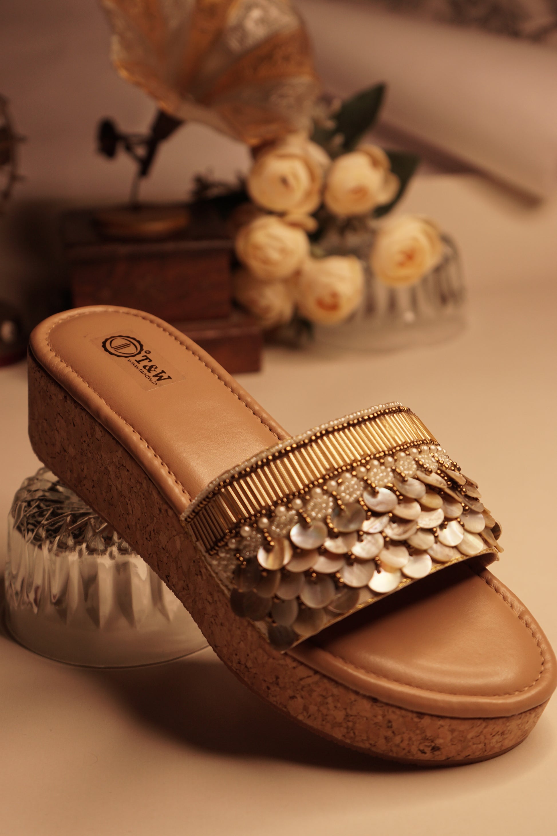 Expertly crafted in India, the Dolphin (Cork Heel) offers a unique blend of style and comfort. The signature cork heel and inner doctor sole provide support and reduce impact while the non-slip sole ensures stability. Featuring intricate dabka work, these sandals are perfect for any occasion.