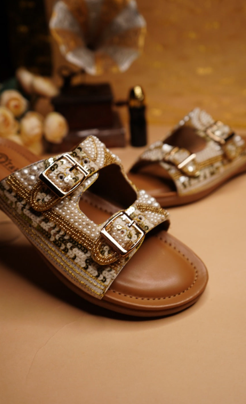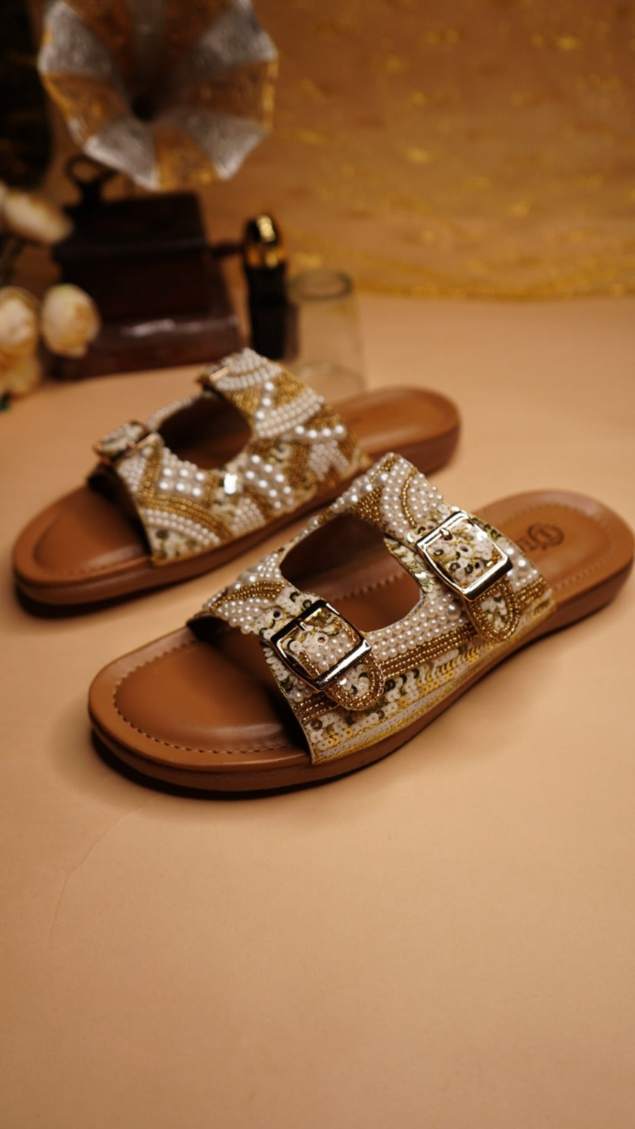 Introducing Fiesta (Sliders) - the ultimate footwear for all-day comfort. Featuring an Inner Doctor Sole that provides unparalleled support and a Non-Slip Sole for added safety. With Joot Work for durability and traditional Embroidery Work from India, these sliders are not just stylish but functional. Step into comfort with Fiesta.