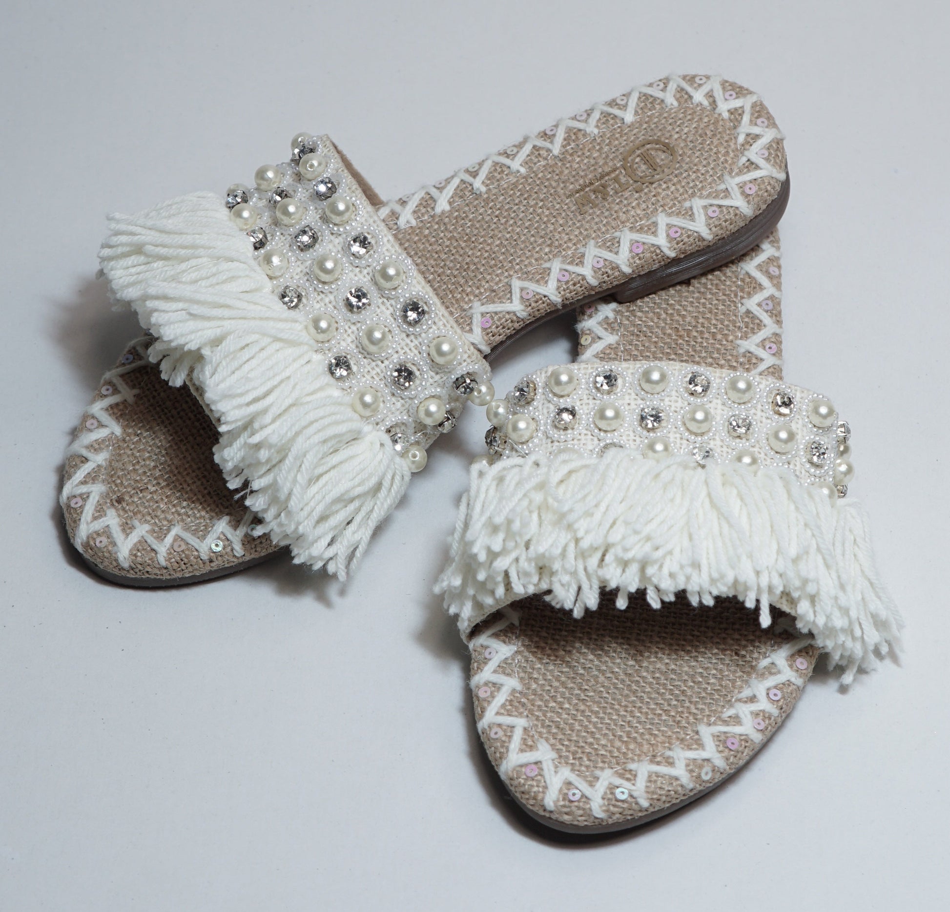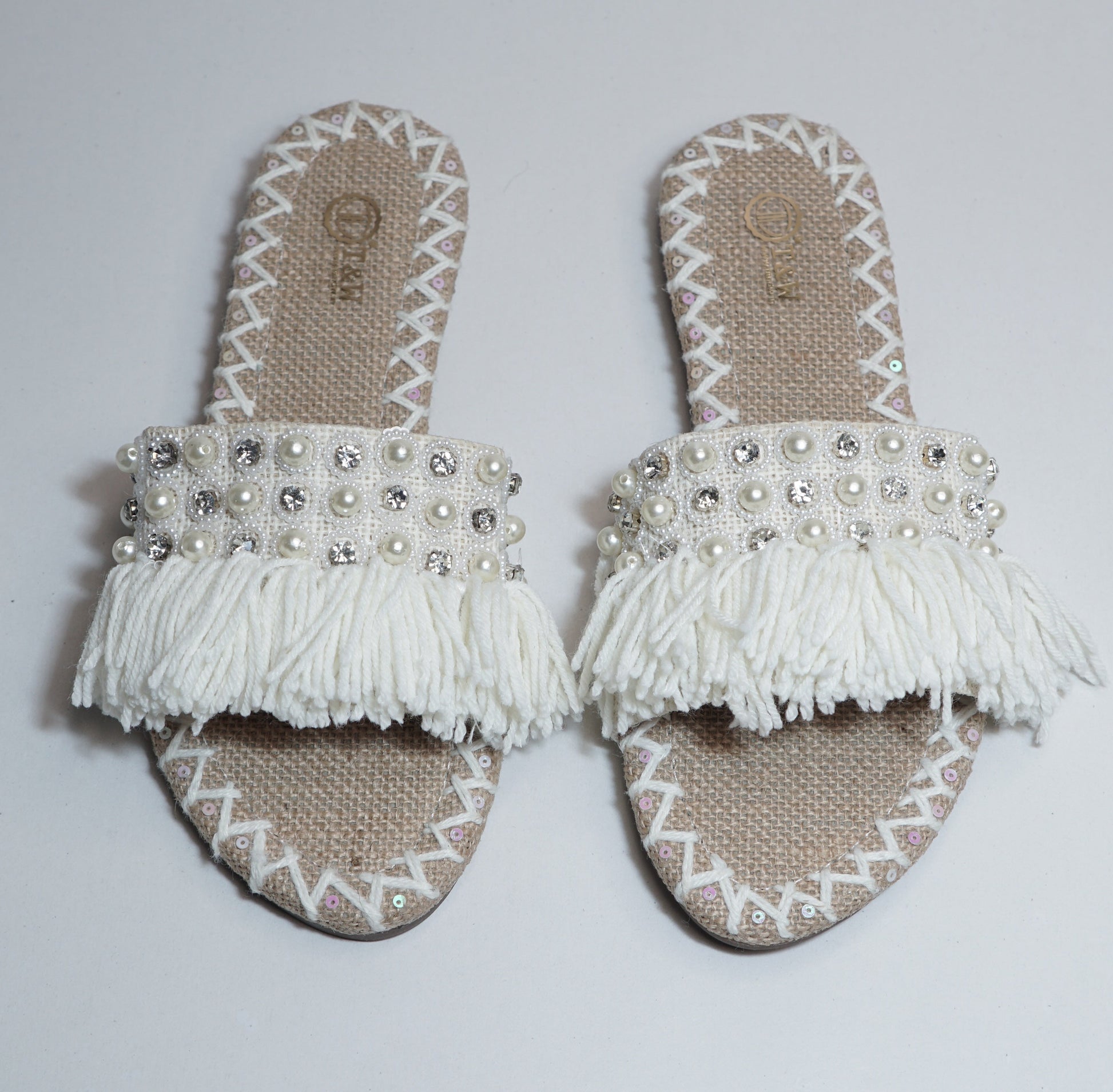 Experience ultimate comfort and support with our Isla Flip Flop Flate. Handmade in India, these flip flops feature an inner pushan sole and wool work for added durability and cushioning. Enjoy the perfect combination of style and comfort with our Isla Flip Flop Flate.