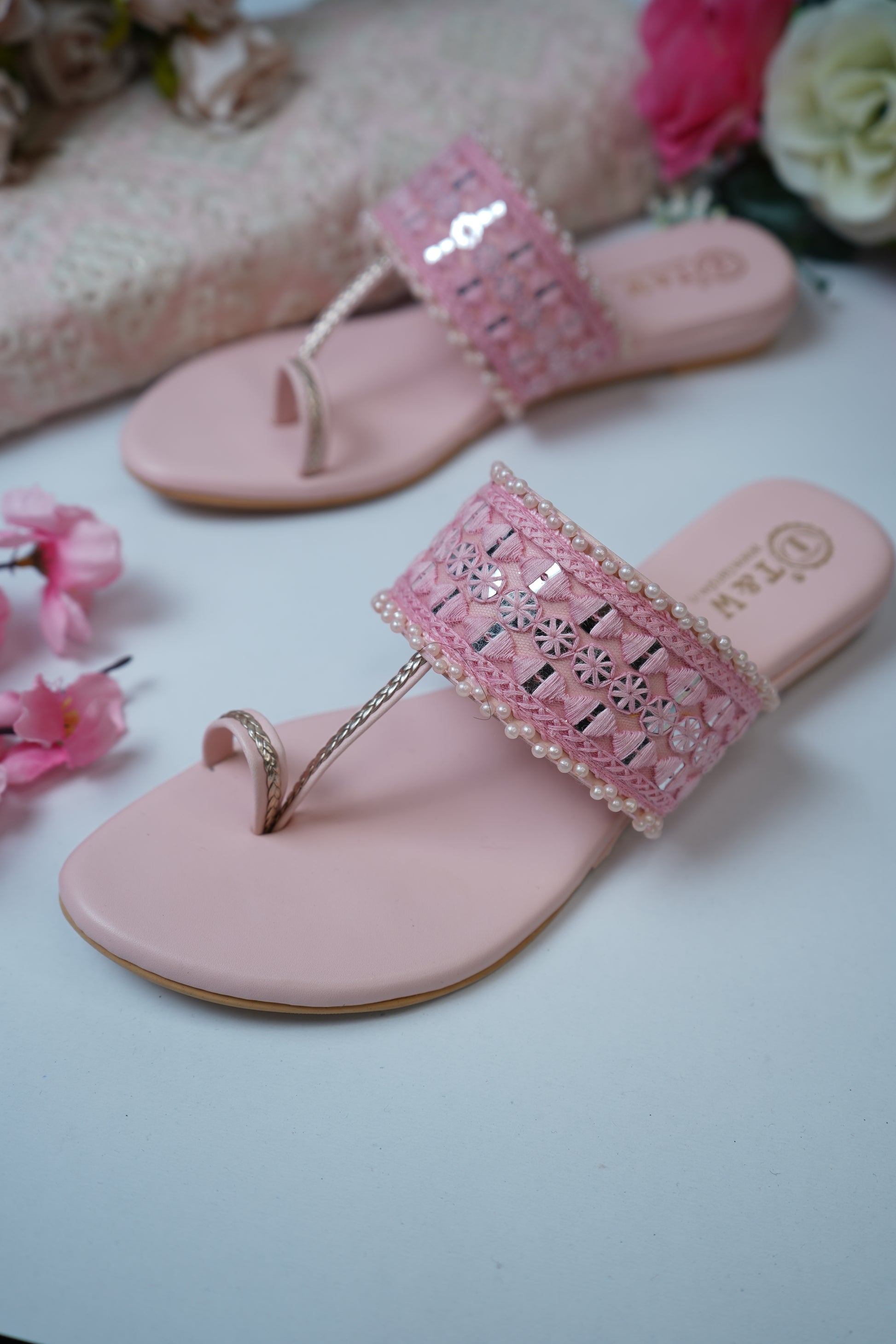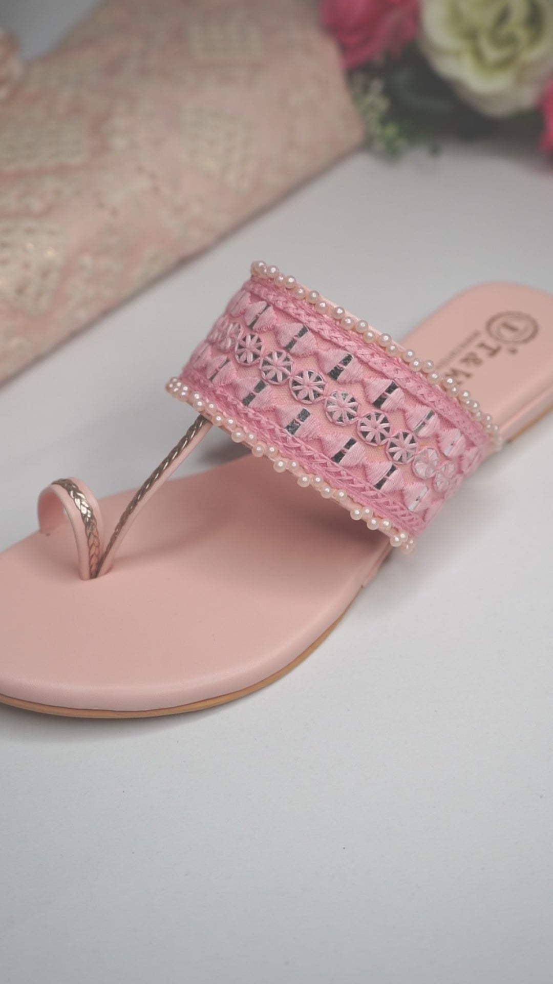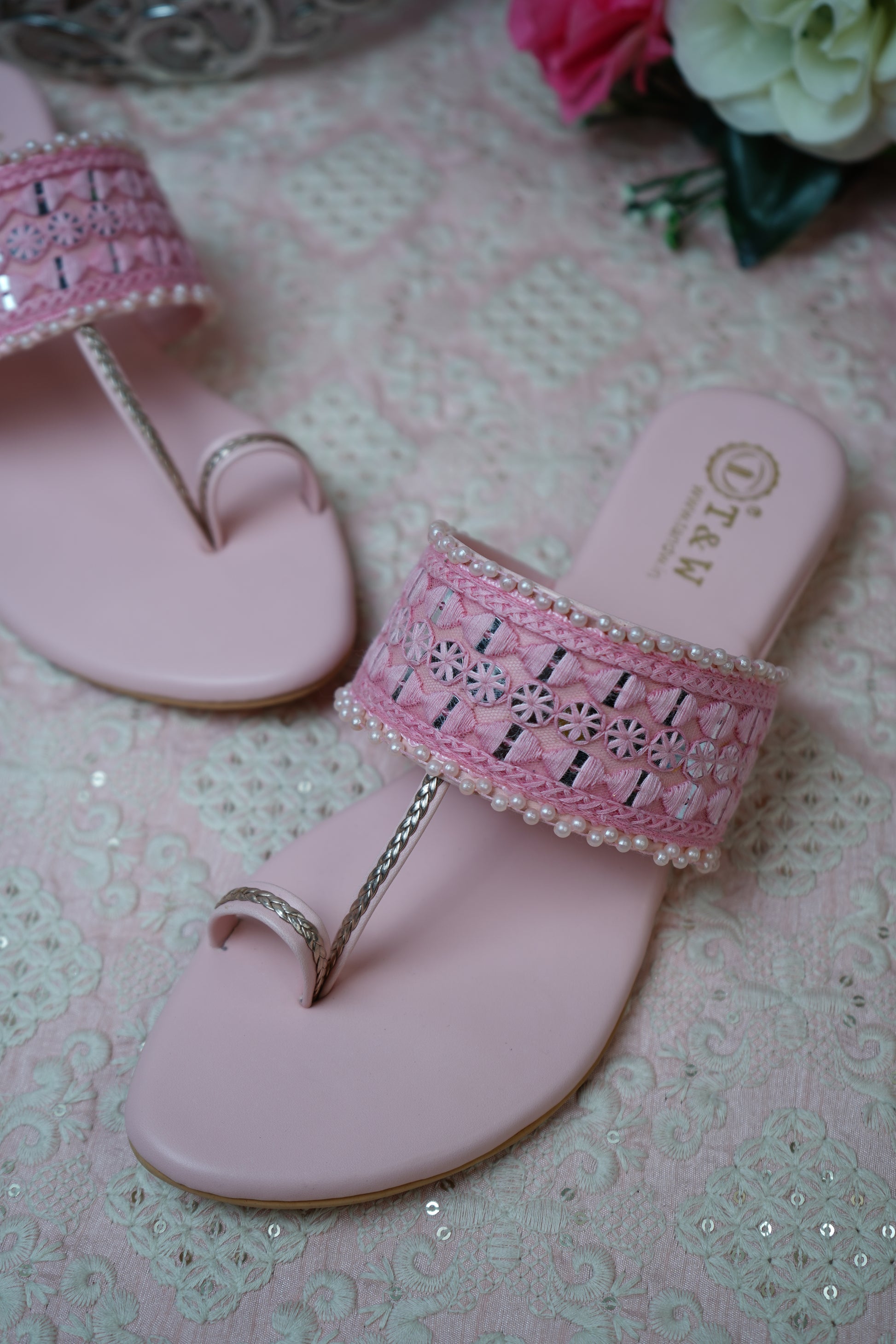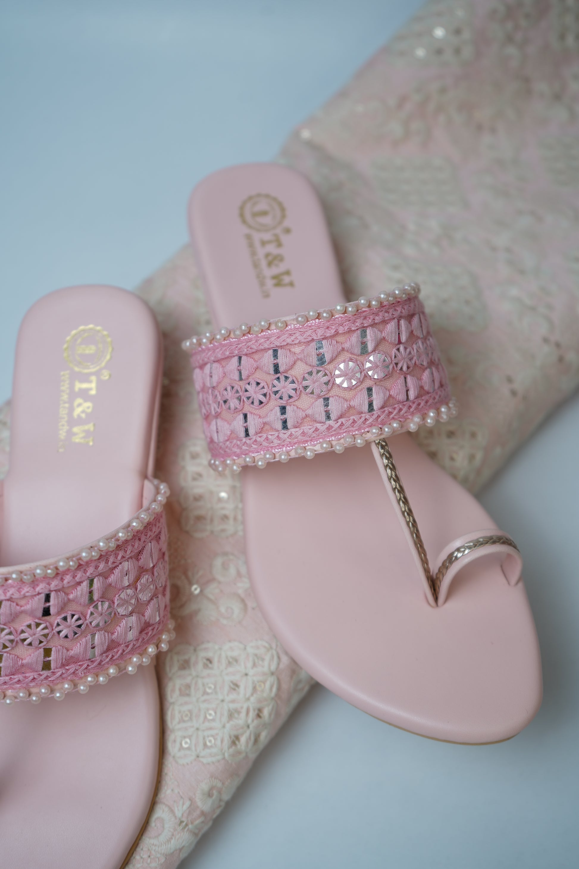 Elevate your style with our handcrafted designer sandals. Made in India, our sandals feature a stunning pink color palette and offer the perfect blend of comfort and fashion. Upgrade your footwear game with TandW.