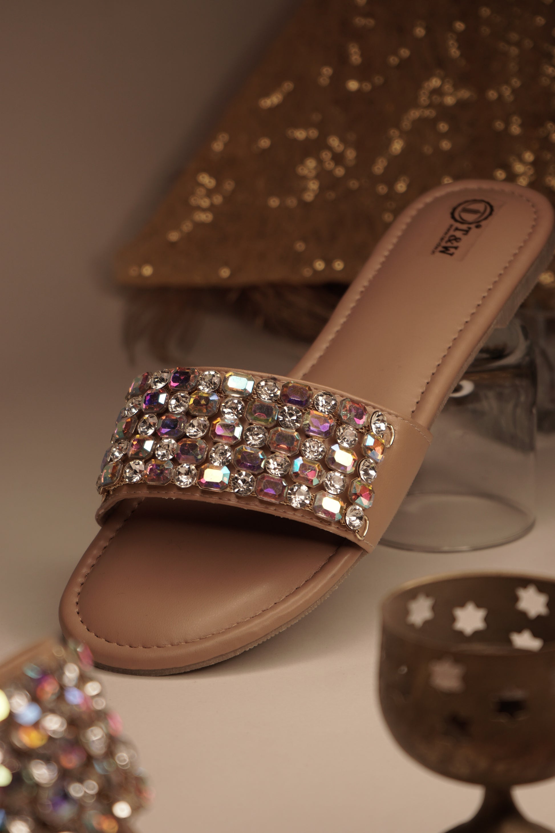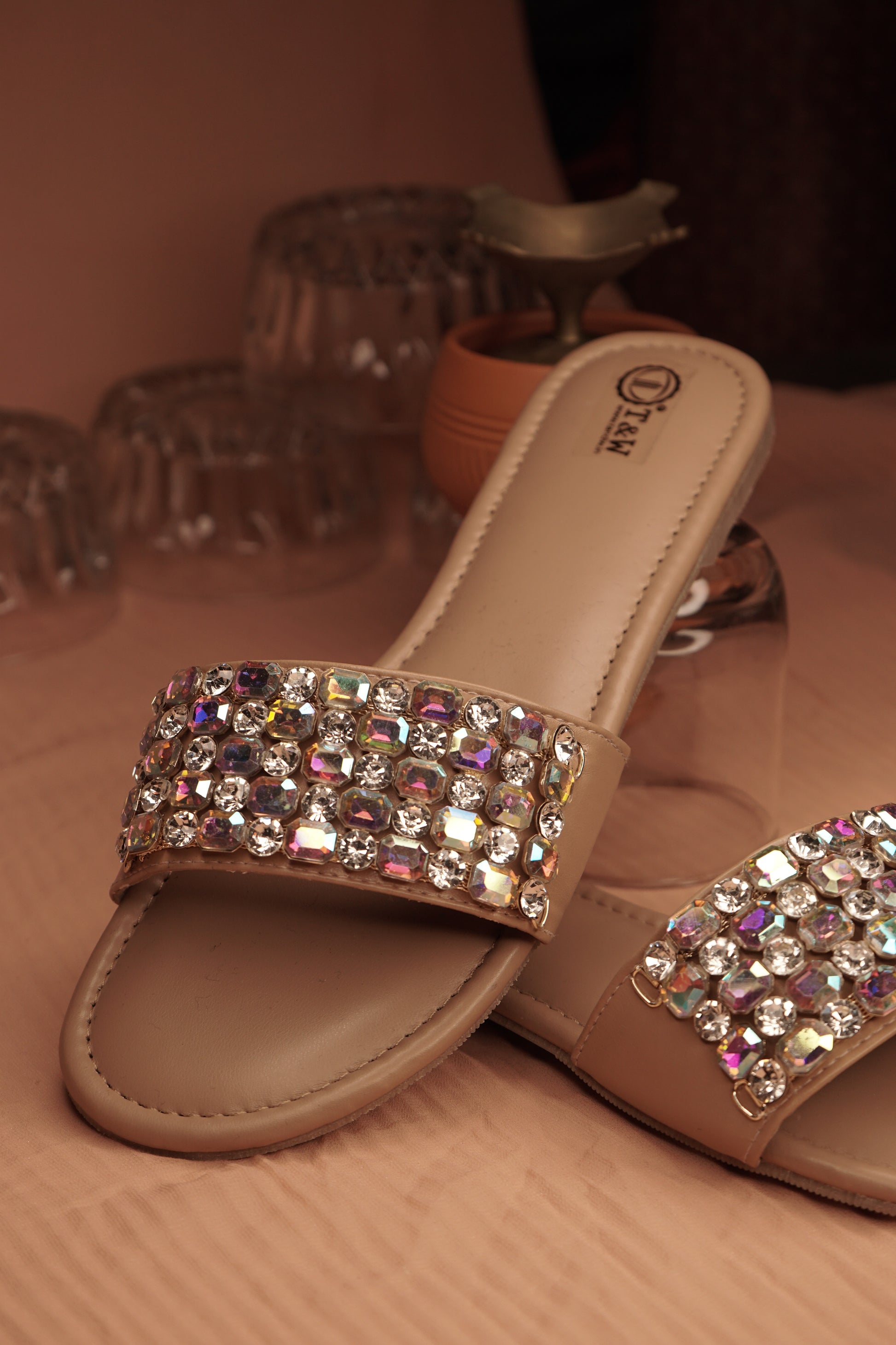 Experience comfort and style with Kelly Crystal Flate, featuring a doctor sole for ultimate support. Made in India, these chappals offer the perfect blend of fashion and function. Walk with confidence and ease with Tandw technology.