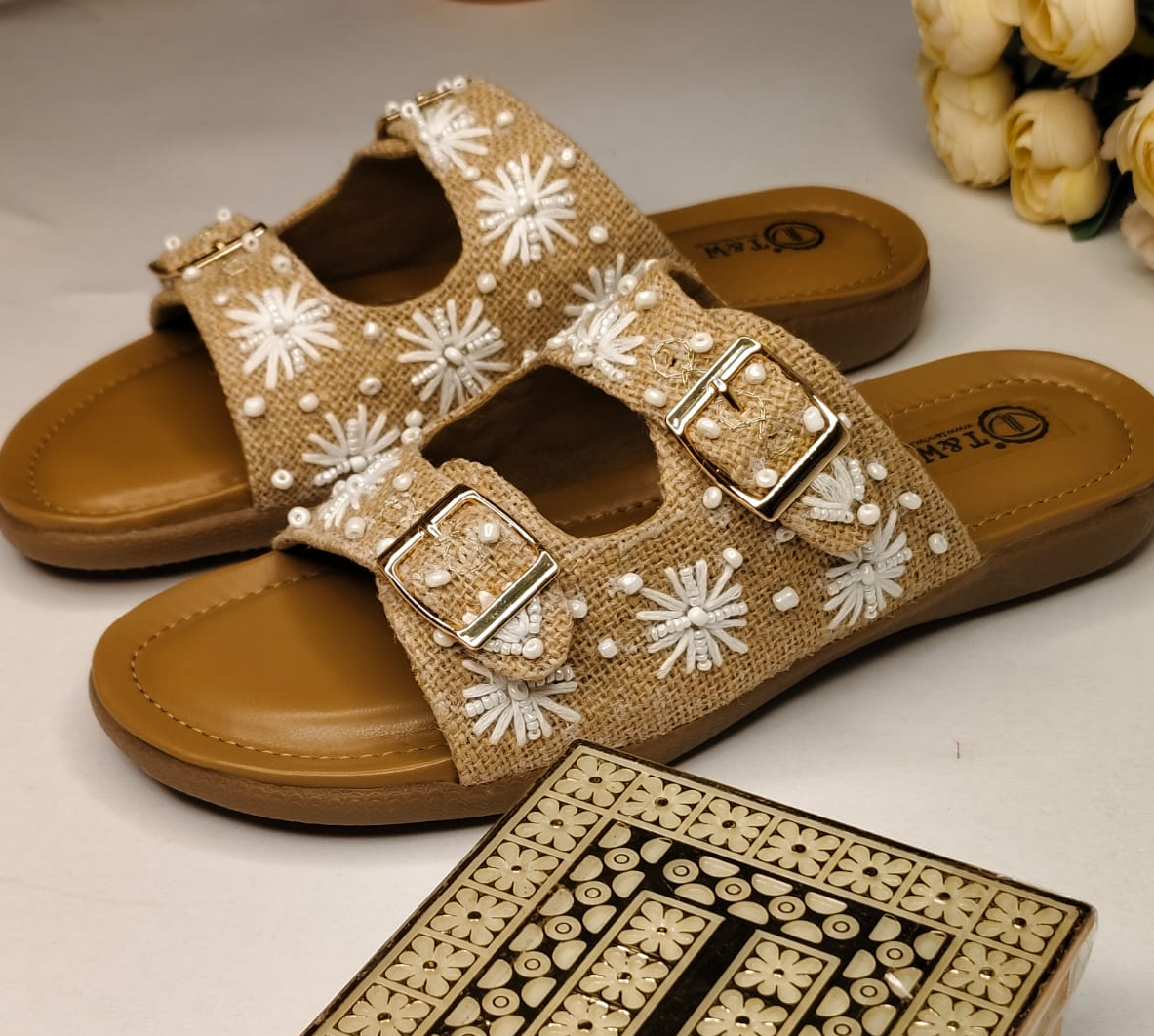 Introducing Leela sliders - the perfect fusion of fashion and functionality. Made in India with premium rubber and joot materials, these sliders not only offer a non-slip sole, but also feature an inner doctor sole for added comfort. With intricate embroidery work, upgrade your summer look with Leela sliders.