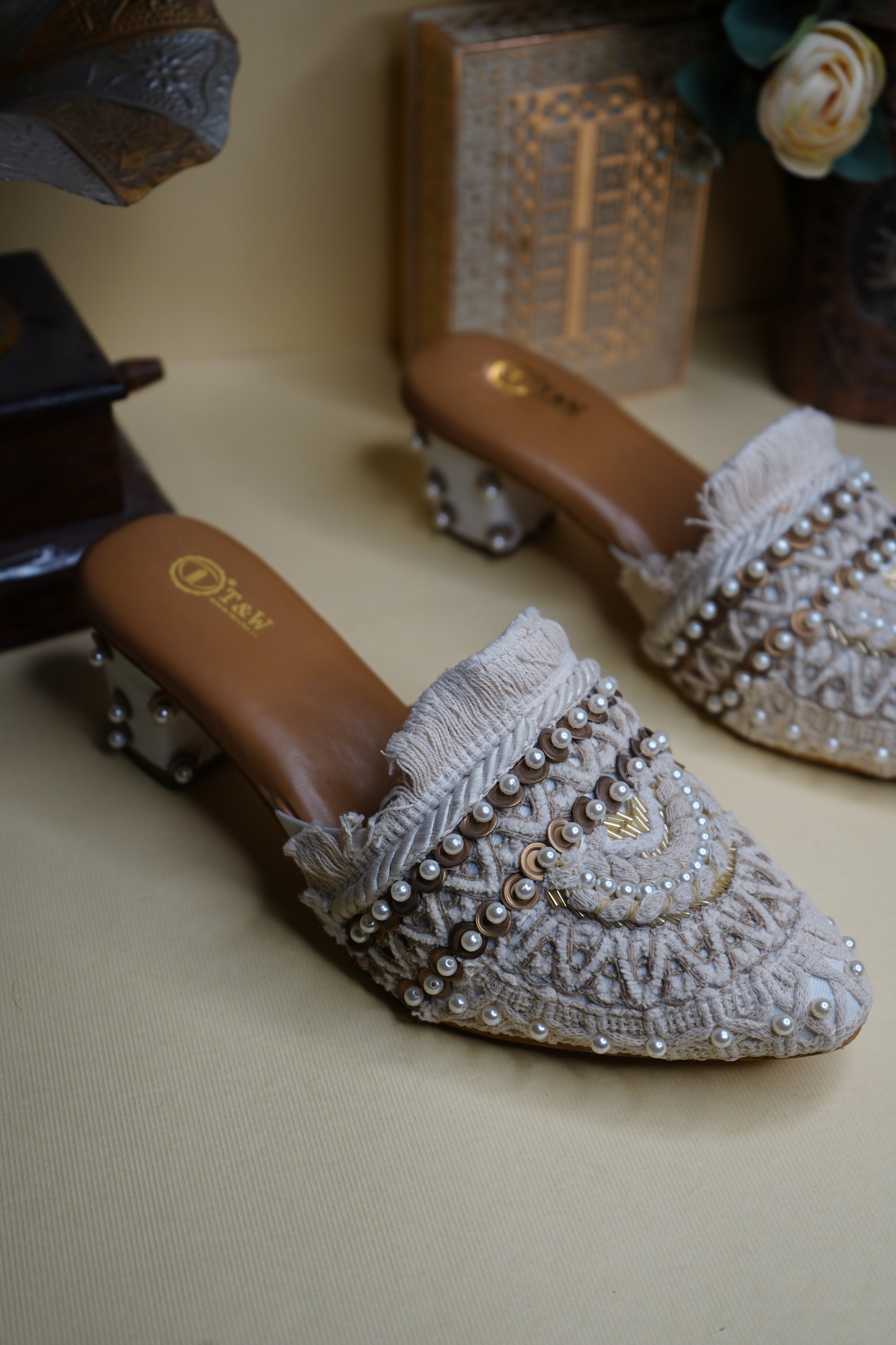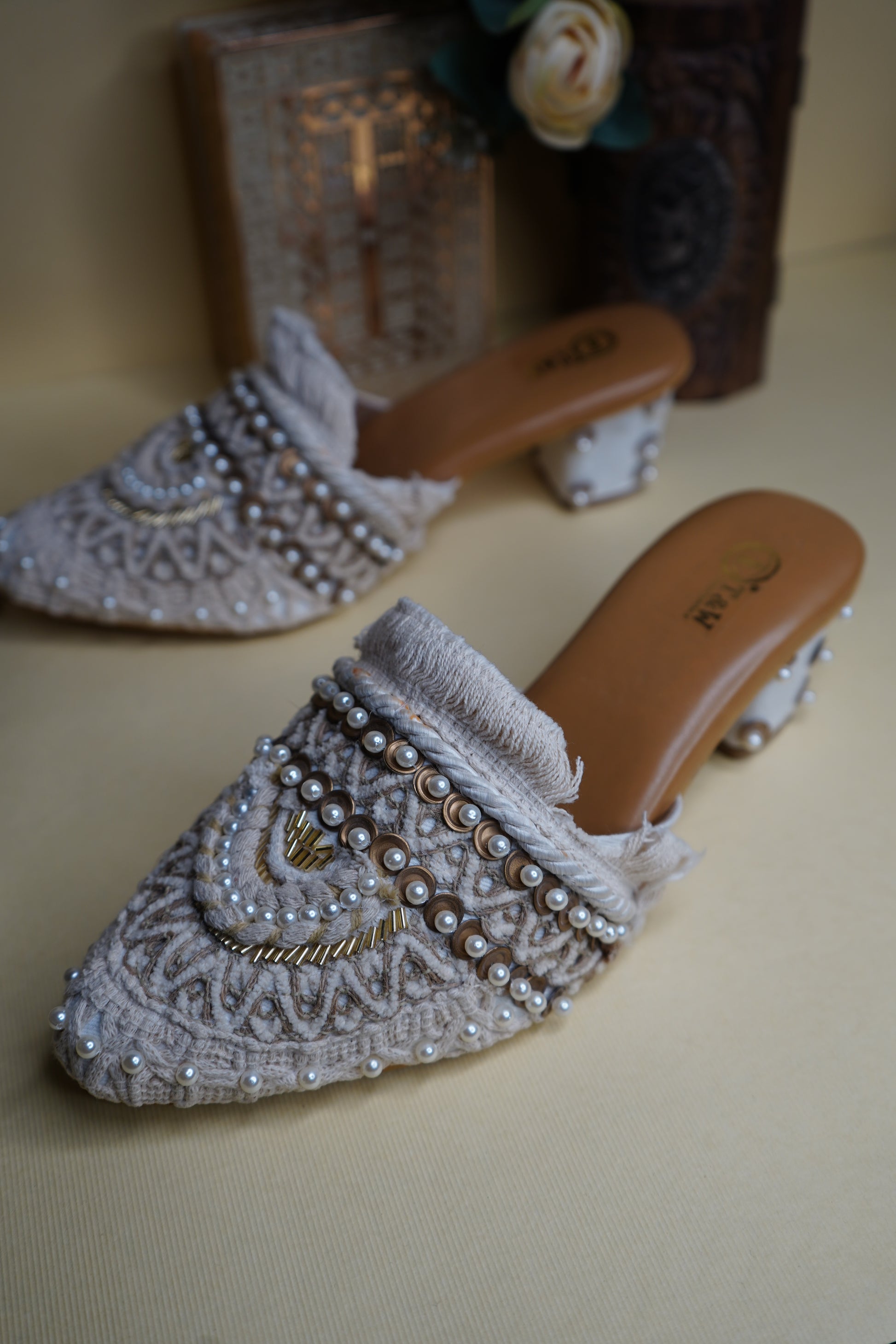 Step out in style with our Pearl Bay Heel Mule. Designed for comfort and durability, this mule features an Inner Doctor Sole and Non Sleep Sole for all-day wear. Adorned with beautiful Dabka Work, this mule showcases the rich craftsmanship of India. Elevate your look with the Tandw design.