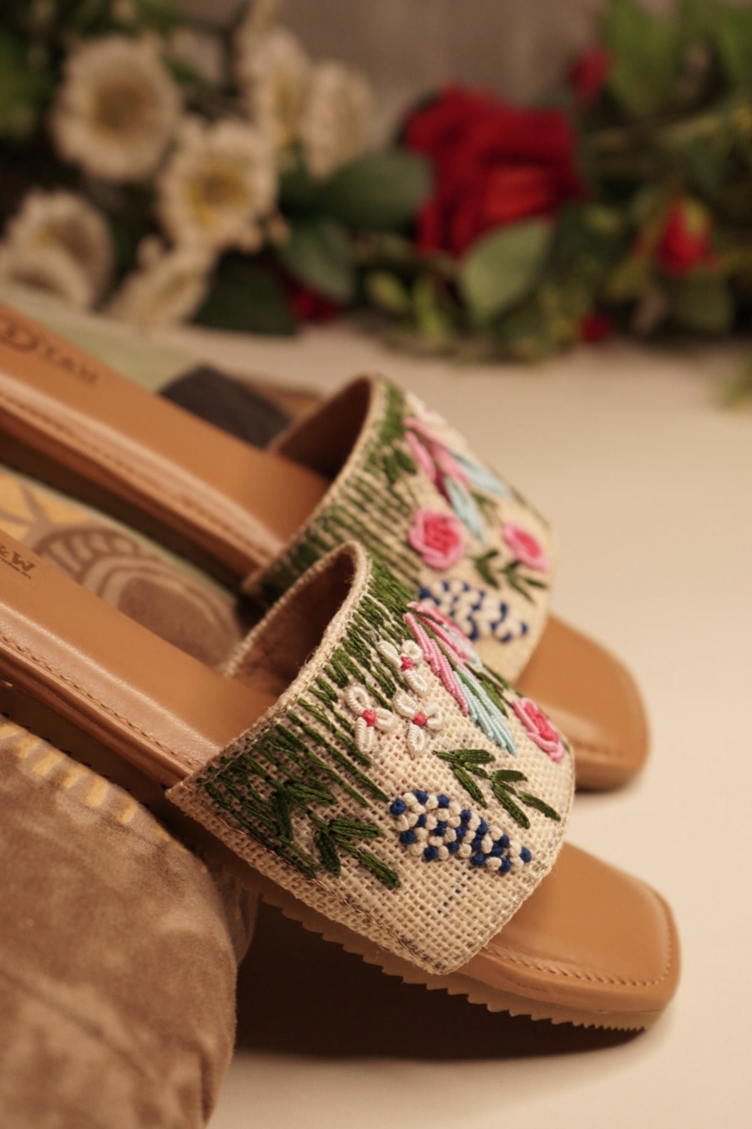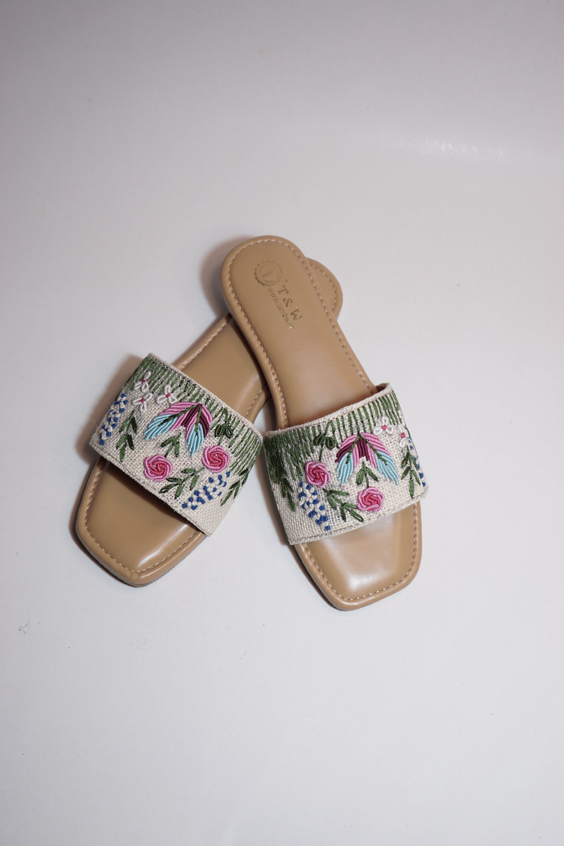Take style and comfort to the next level with Ruhi Flate Flip Flops. Embellished with traditional Indian embroidery and joot work, these flip flops offer a unique and elegant look. Crafted with a supportive pushan sole, experience all-day comfort and the exceptional quality of India Tandw craftsmanship.