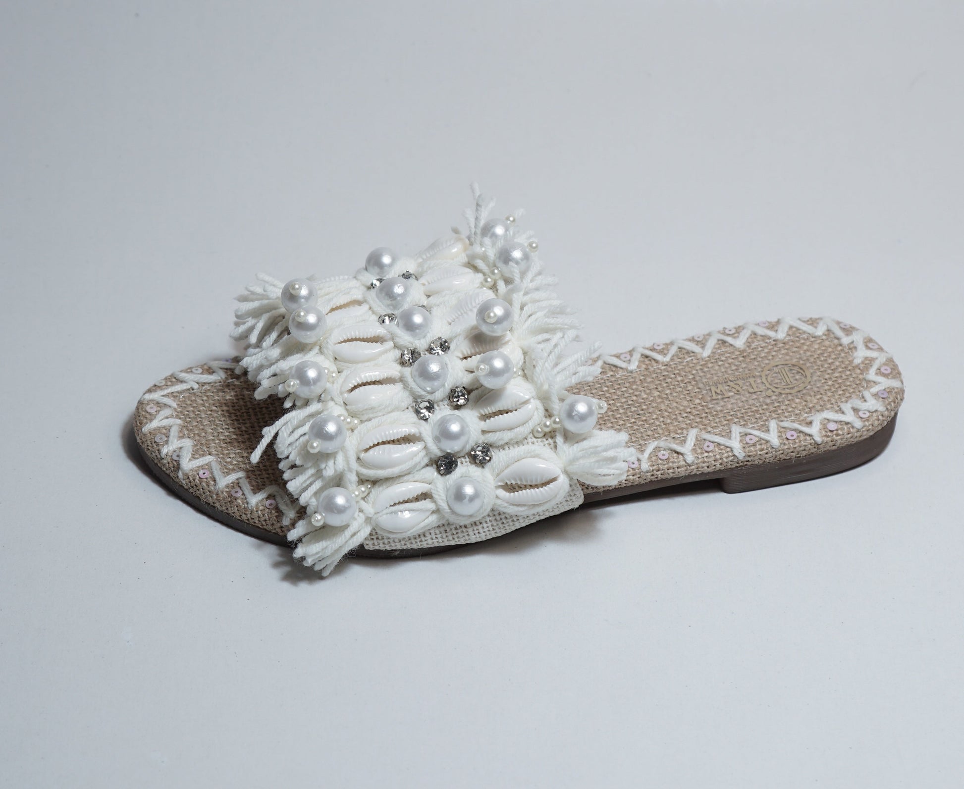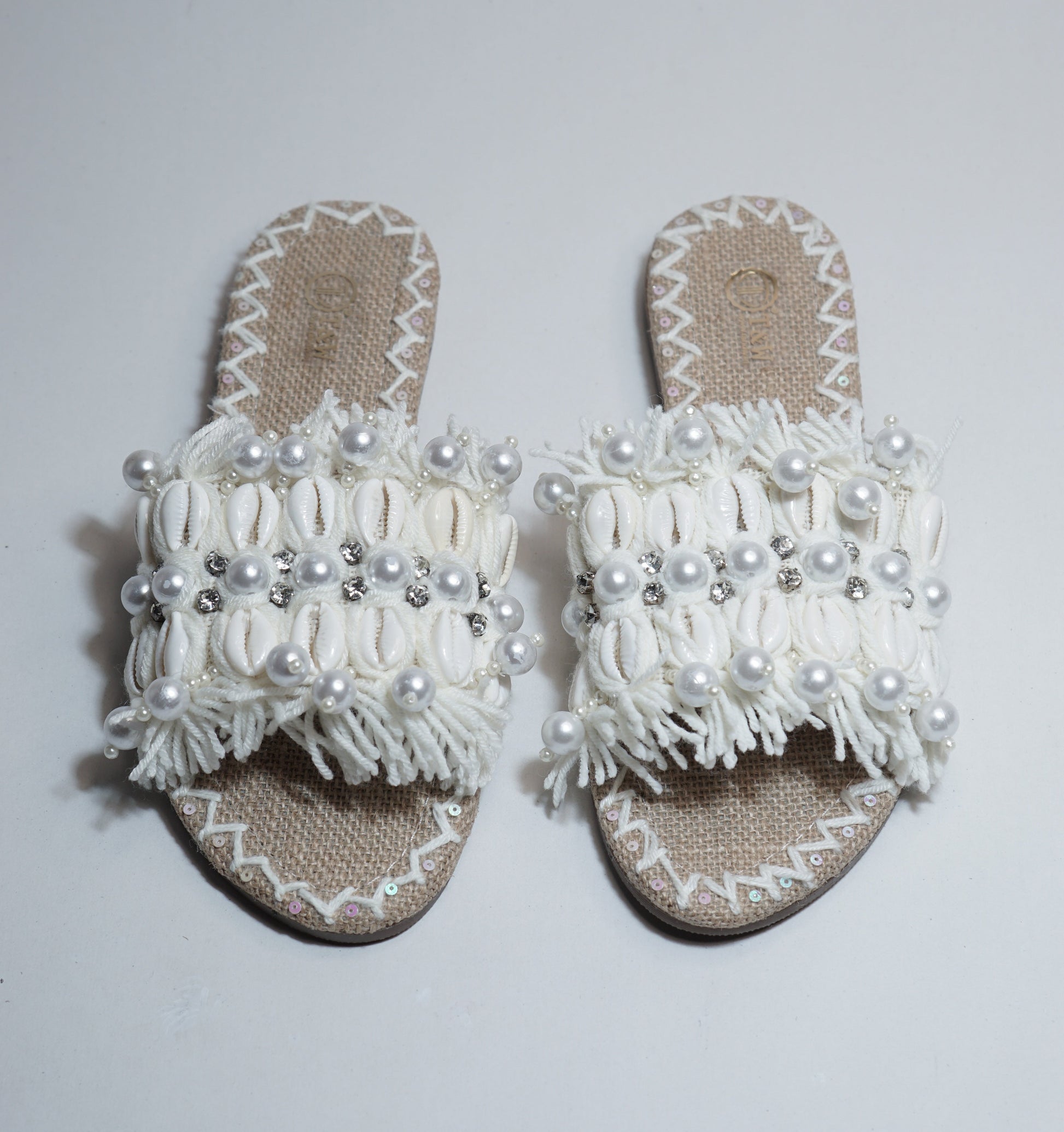 Expertly handcrafted in India, the Savera Flat Flip Flop offers a unique blend of style and comfort. The intricate shell and wool work add an elegant touch, while the non-slip sole provides stability. Perfect for any occasion, this flip flop is sure to impress.