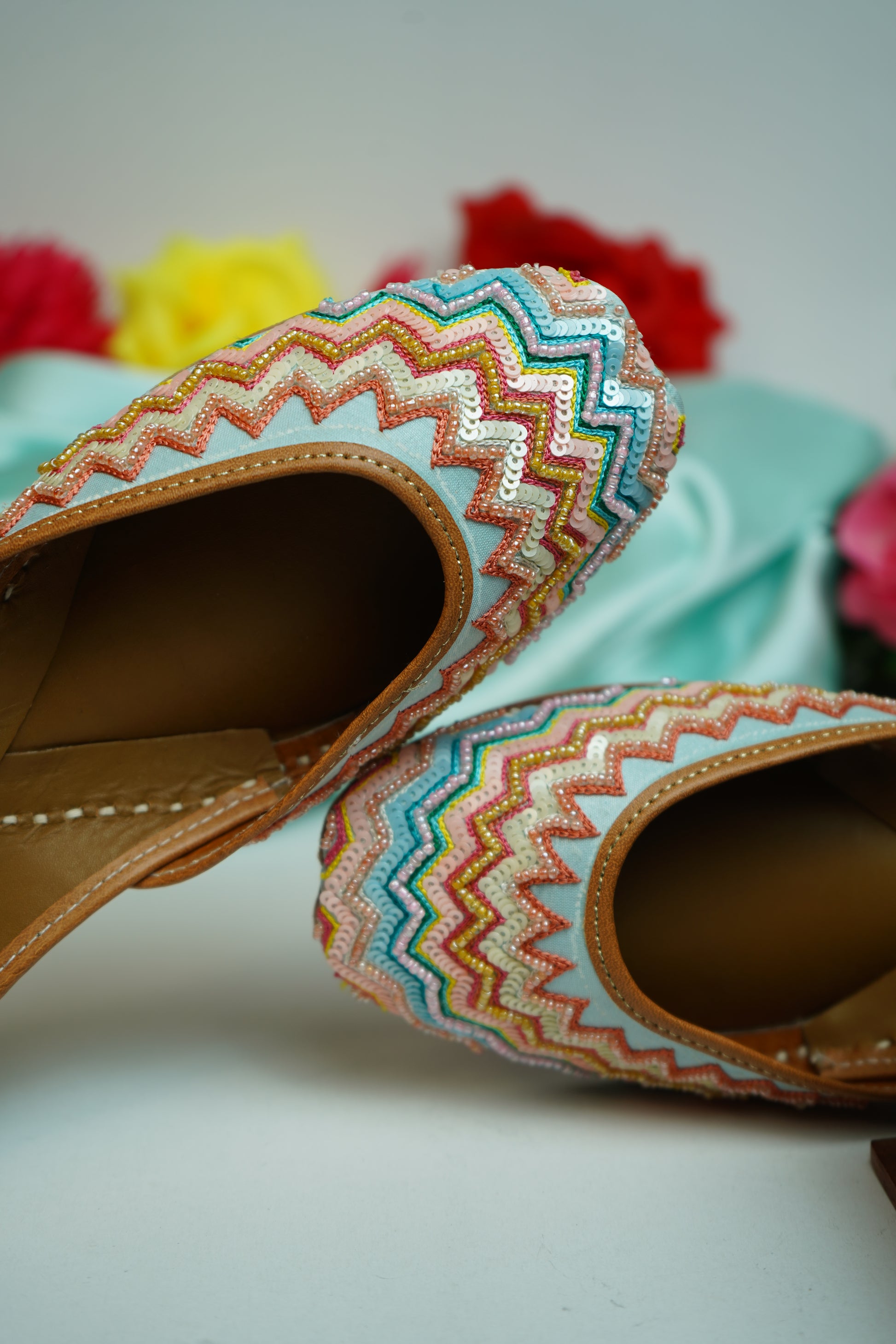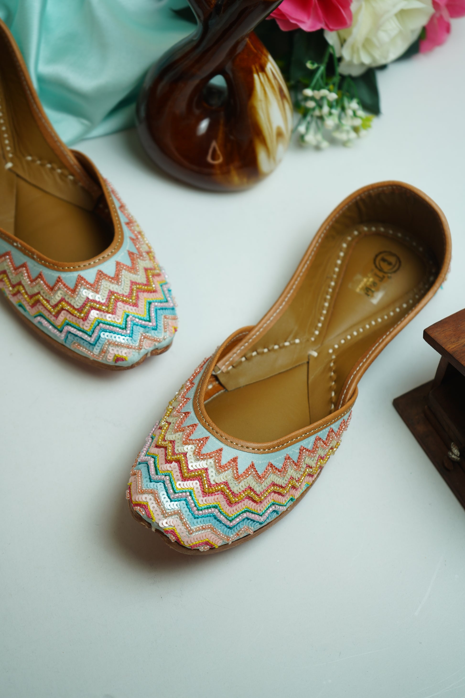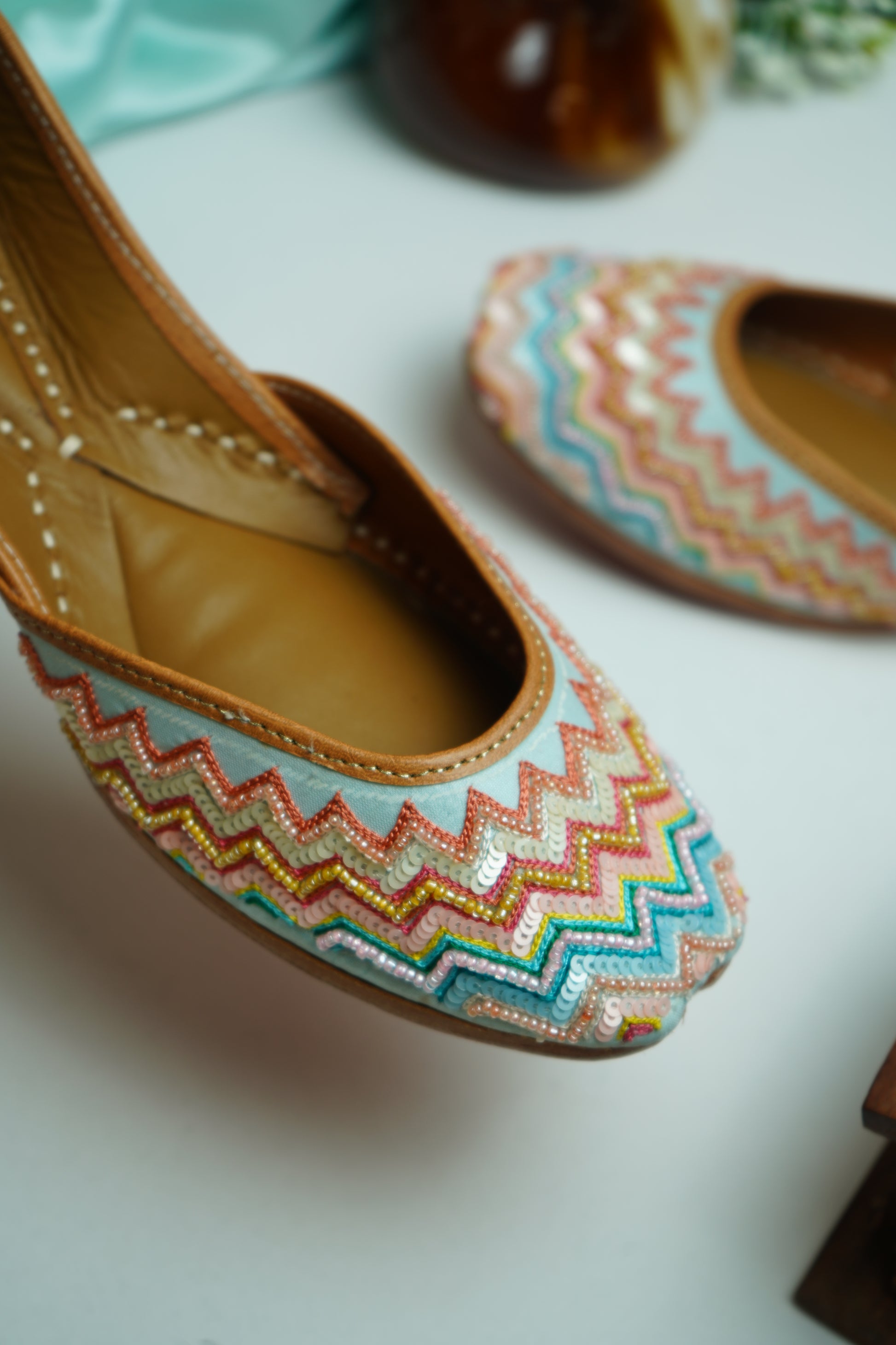 Introducing Snapper (Jutti), a comfortable and stylish leather shoe from India. Its elastic stretching feature ensures a perfect fit, while the elegant pearl work adds a touch of sophistication. The vibrant blue color adds a pop of color to any outfit. Step out in style with Snapper (Jutti).