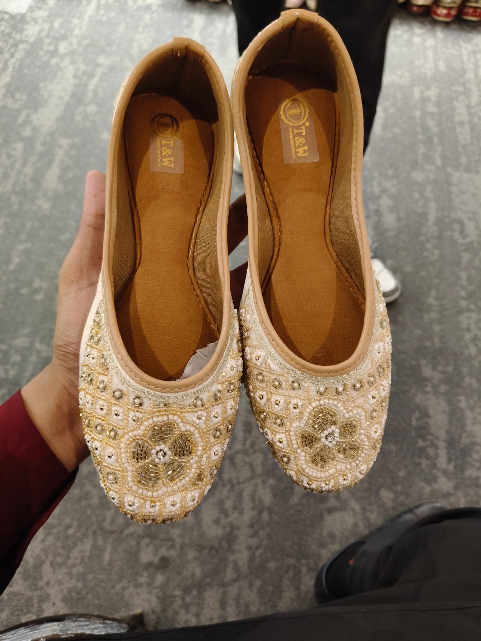 Discover luxury and culture with Léontine (Dabka Bely). This exquisite jutti showcases stunning handicrafted dabka work, making it the perfect addition to any outfit. Made in India, TAndW. Expertly designed for you.