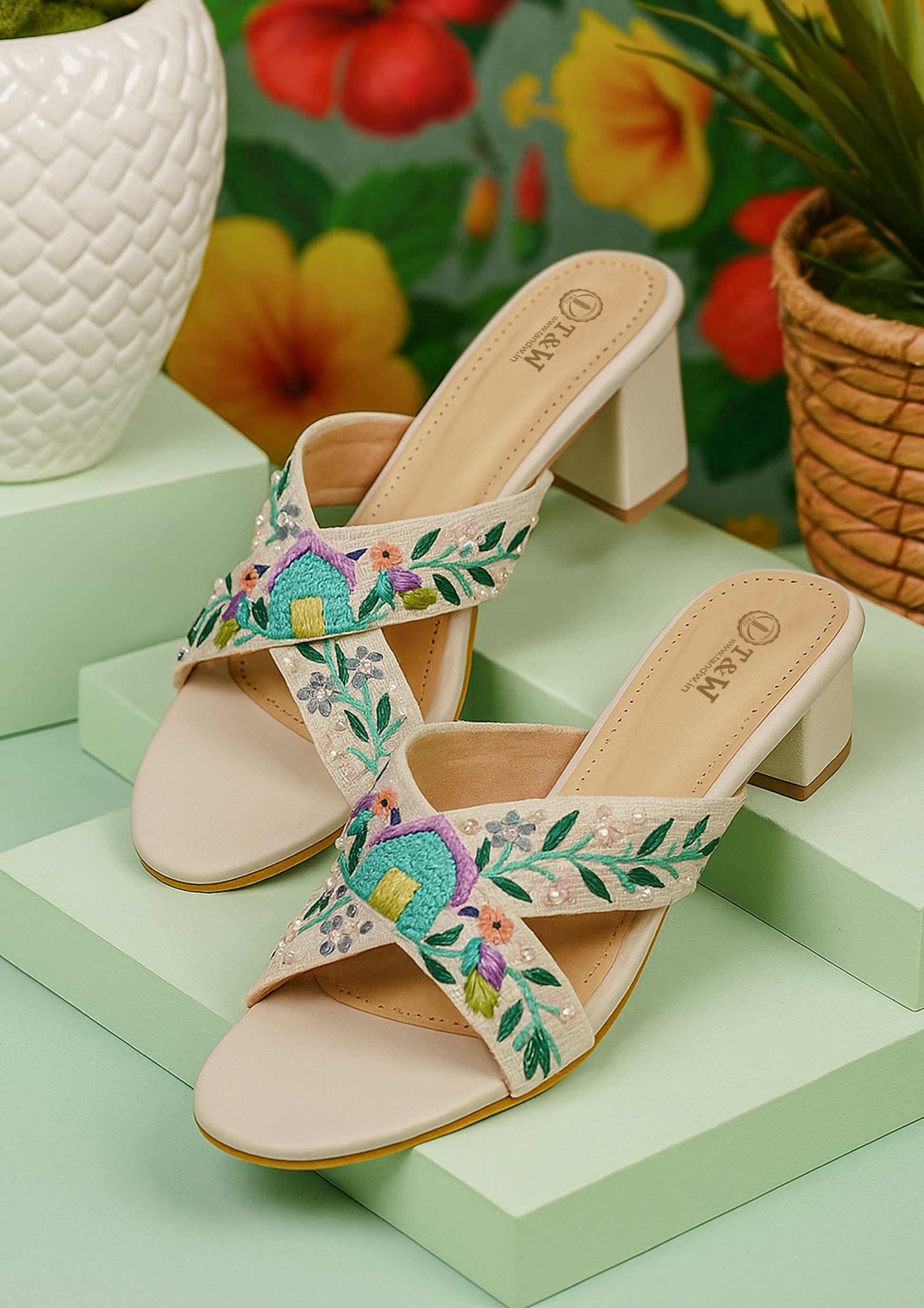 Introducing Yuzi - the perfect pair of heels for all occasions. Featuring a unique Criss Cross design and an Inner Pushan Sole for added support, these heels also boast a sturdy Non-Sleep Sole for maximum comfort. Handcrafted in India with exquisite Dabka Work, Yuzi is the perfect blend of style and functionality. Elevate your outfit with the sophisticated Tandw heels.